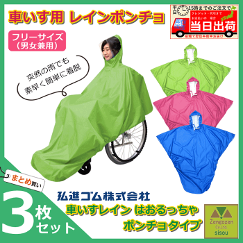 車いすレイン はおるっちゃ ポンチョタイプ 3枚セット【介護 車いす用レインコート 車椅子 レインコート 高齢者 老人 プレゼント 車いす 雨合羽 レインコート 車椅子 ポンチョ かっぱ カッパ 防水 生活支援 自活 自助具 雨合羽 レインコート 車いす用 弘進ゴム】
