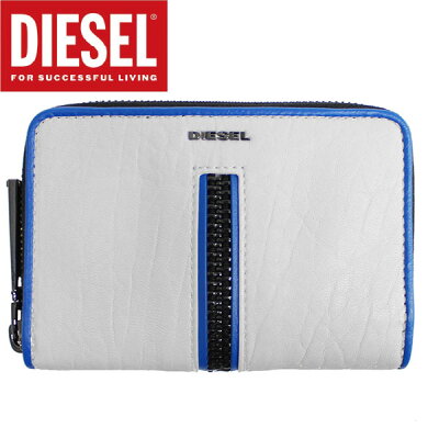 エントリーで全品ポイント3倍〜最大22倍!1/1 23:59まで DIESEL ディーゼル JADDAラウンドファスナー ウォレット 財布 フロントジップ 羊革 メンズ レディース X05334-PR044-T1002ホワイト ブルー プレゼント ギフト 通勤 通学 送料無料