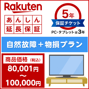 楽天あんしん延長保証(自然故障+物損プラン)商品価格80,001円〜100,000円