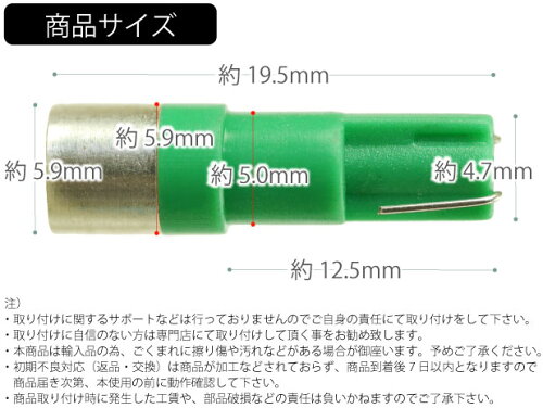 仕様 ●電源 :DC12V専用 ●重量 :約1g(1ヶあたり) 【ご注意】 ・取り付けに関するサポートなどは行っておりませんので取り付けに自信のない方は専門店にて取り付けして頂く事をお勧め致します。