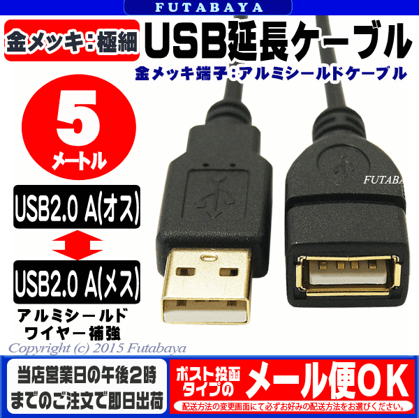 金メッキ端子・アルミシールド・極太データ線で安心のUSB2.0延長ケーブル ●細くても強い! ケーブルの外被を限りなく薄く、しっかりした極太データ線使用、高品質アルミシールドで極太データケーブルをガッチリ保護、被覆が薄くなった分中心部分にワイヤーでケーブル全体を強化いたしております。